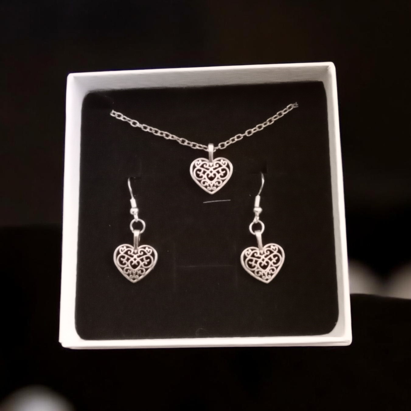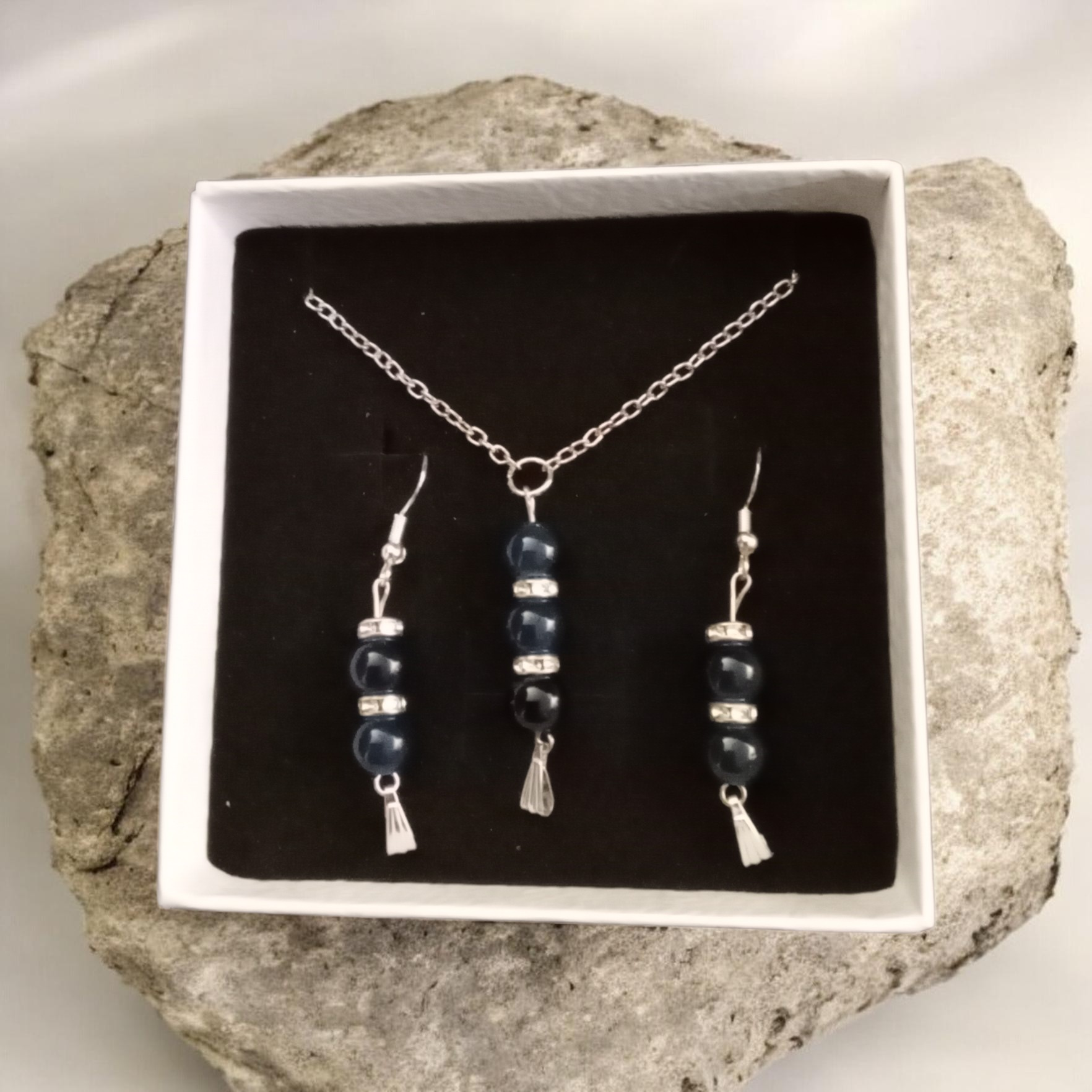 A selection of matching jewellery sets containing a necklace and earrings.